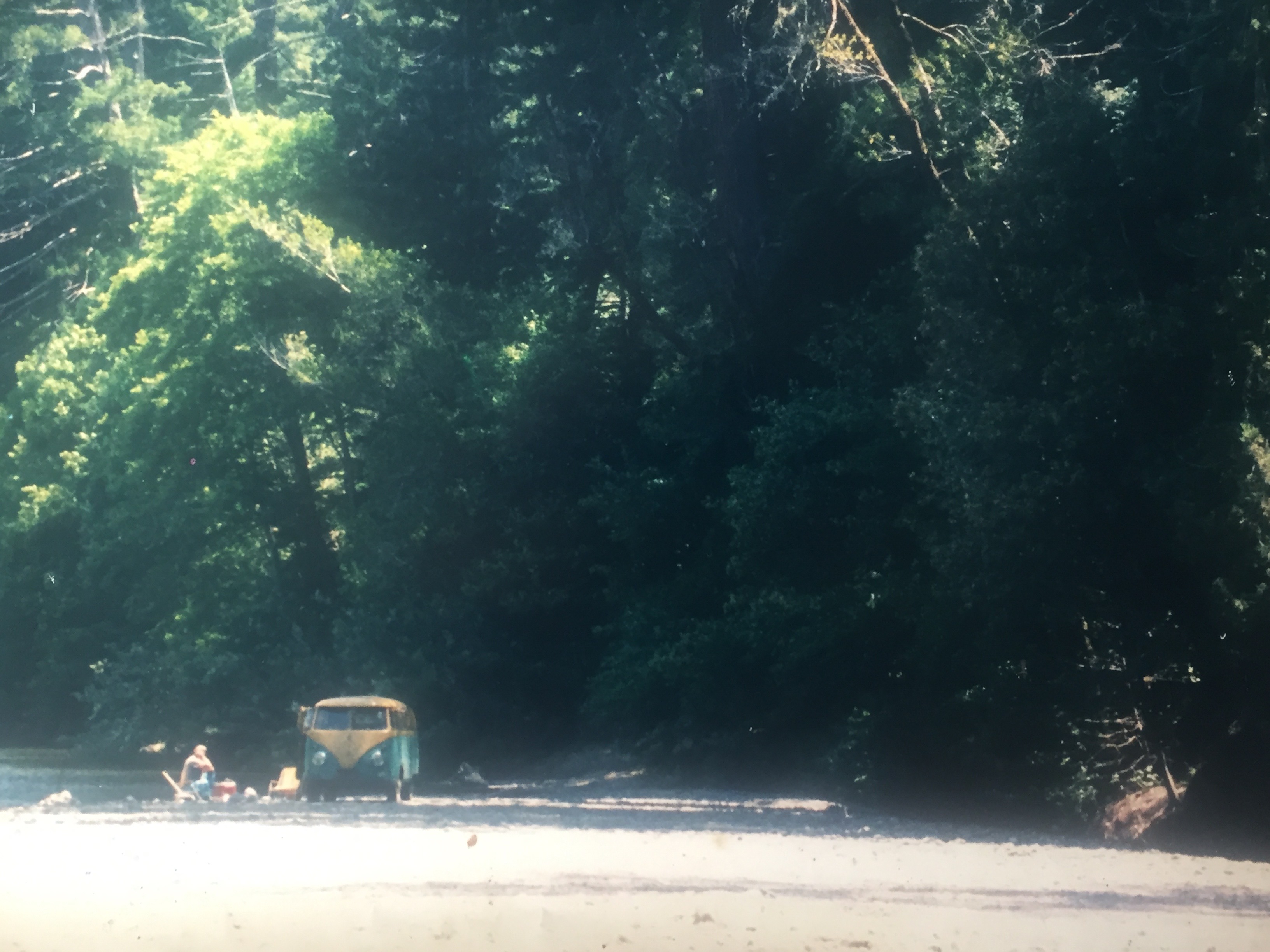 Steve and Betsy on Haupt Beach, on the Gualala. This is a small detail of a large photograph of the giant redwoods.