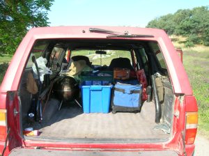 We slept on the ground in down sleeping bags, wrapped up like a burrito in a white cotton painting tarp. In the morning we witnessed the amazing complexity and diversity of one species, a family of scrub jays (and one Western Tanager) that were fat, thin, tall, short, with various personalities in the pecking order as they came down to clean potato scraps from the frying pan.