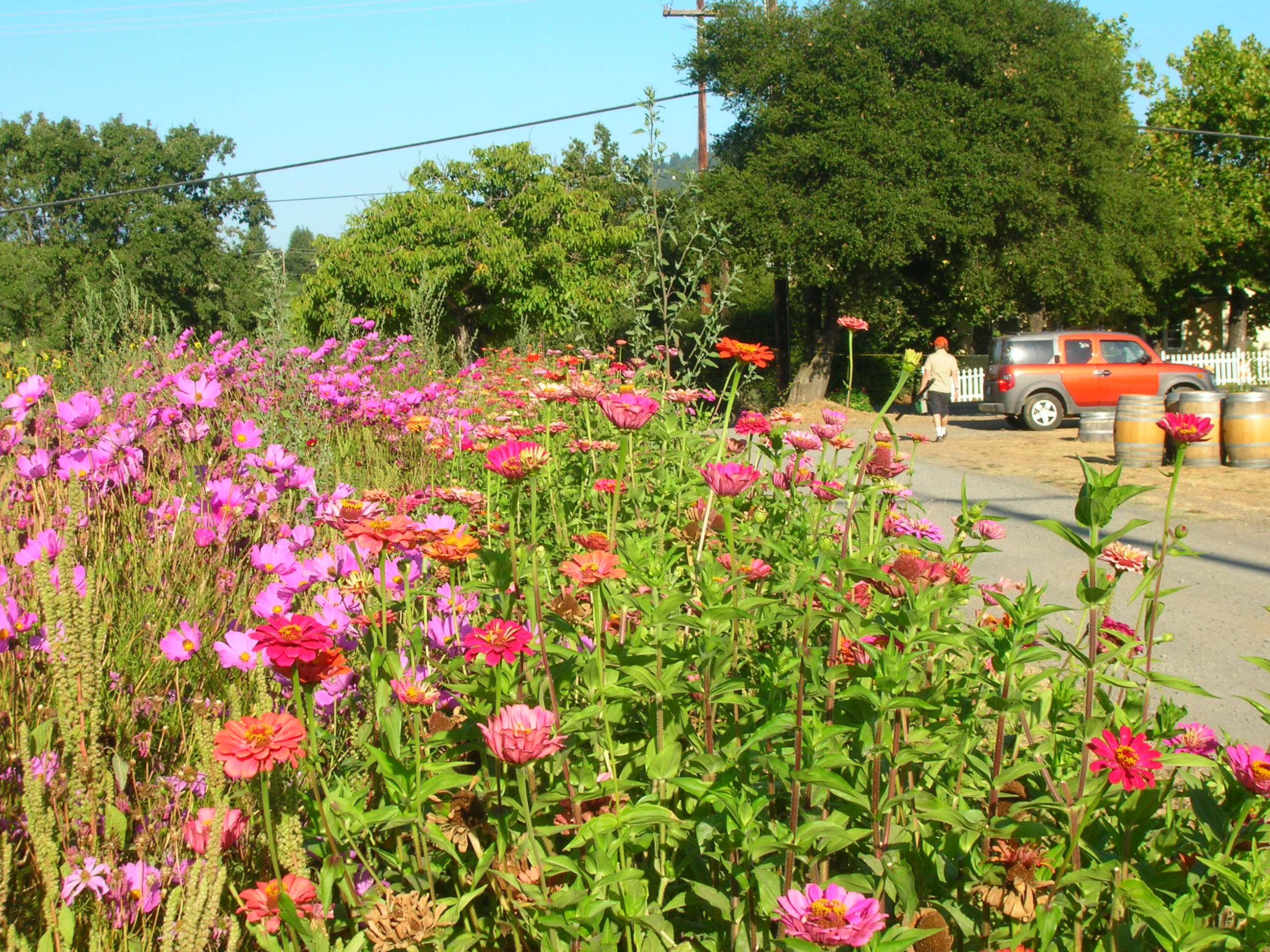 In August we camped and played a festival at a little produce grower, “Love Farms” , with fields of zinnias and a troupe of ostriches backstage, in Healdsburg, CA.