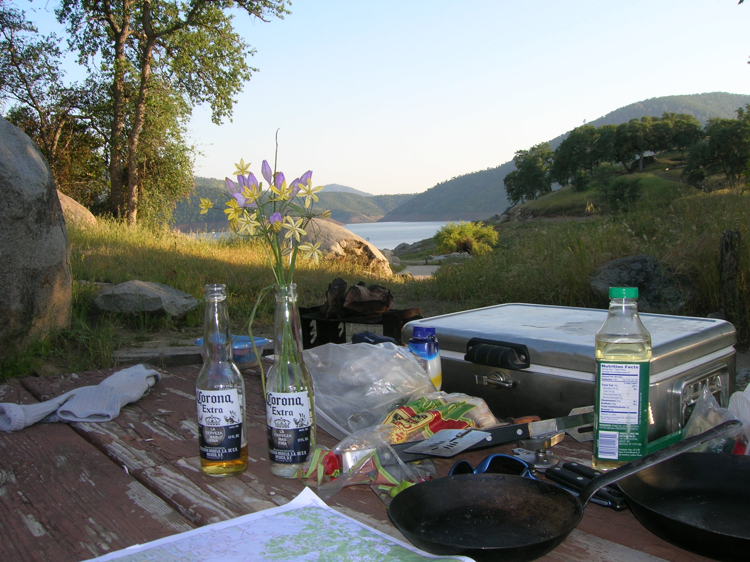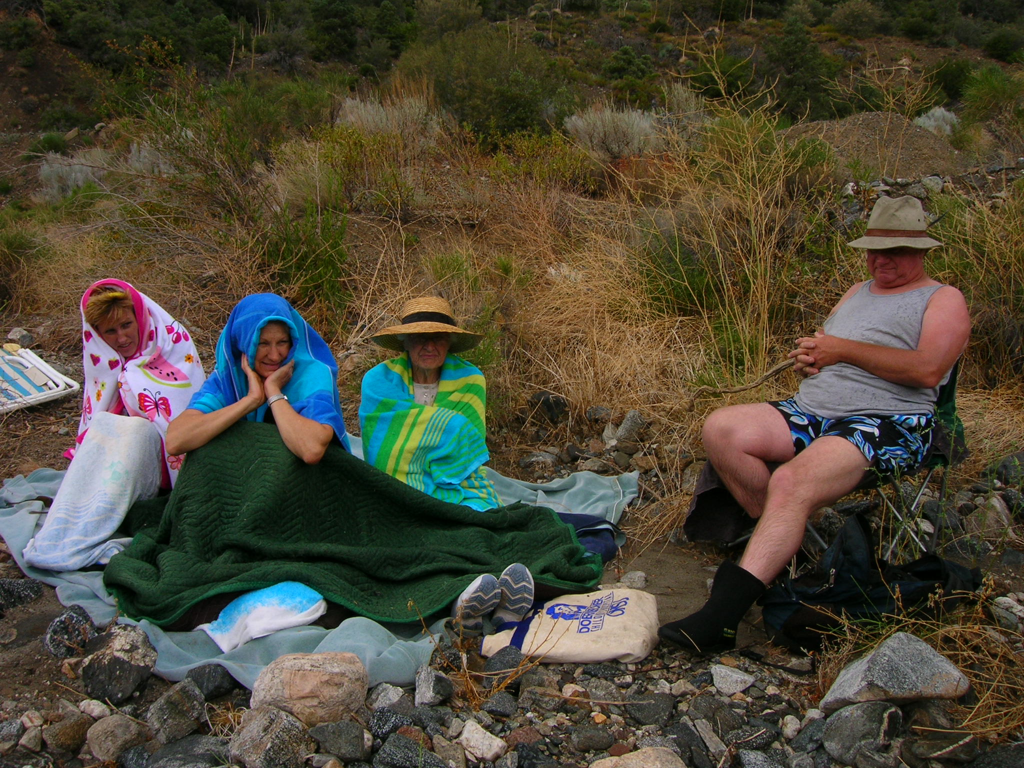 A brilliant loud moon that night, and cold in the morning. A hike in the rainy spring desert, Amargosa Wash was running, and a tamarisk grove had taken hold in the outflow from the new housing tract.
