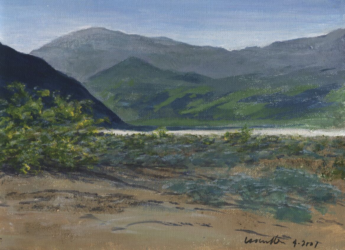 This piece is of Clark Dry Lake in Death Valley, and I incorporated some of the native sand to get the color right. Now and then I do paint from a photograph, but it can take much longer.